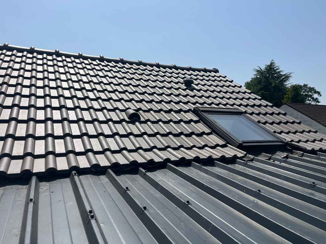 Réfection complète d’une toiture avec isolation par l’extérieur sur une maison située sur la commune de Voisins-le-Bretonneux dans le département des Yvelines (78).